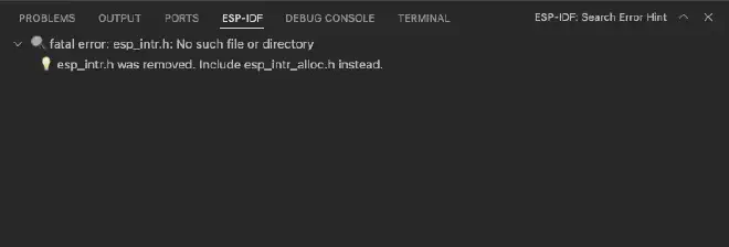 The ESP-IDF bottom panel automatically updates to display ESP-IDF hints based on the errors in your currently opened file.