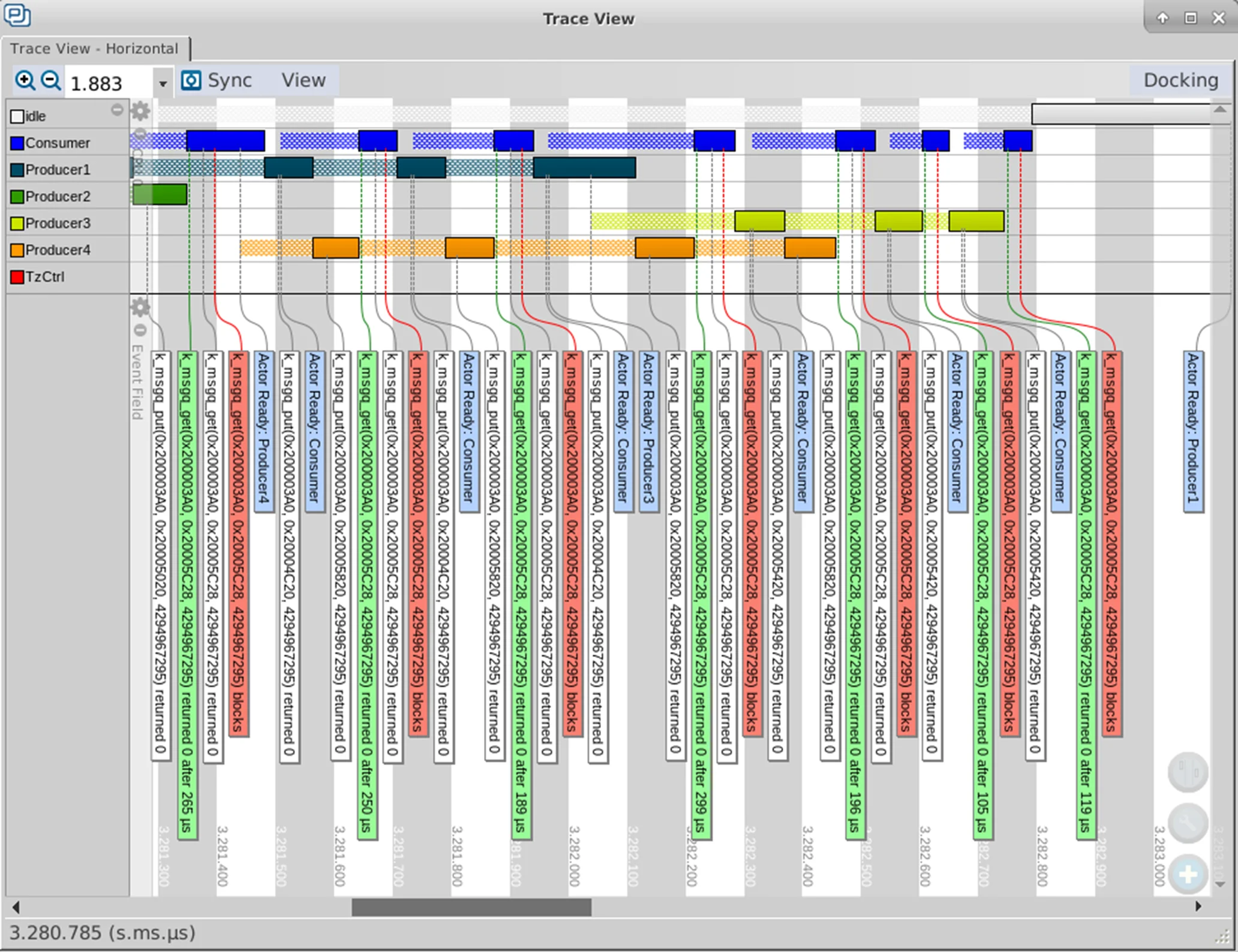 Tracealyzer offers a front-end tool to analyze and process the collected data, helping visualize how the system is behaving dynamically: