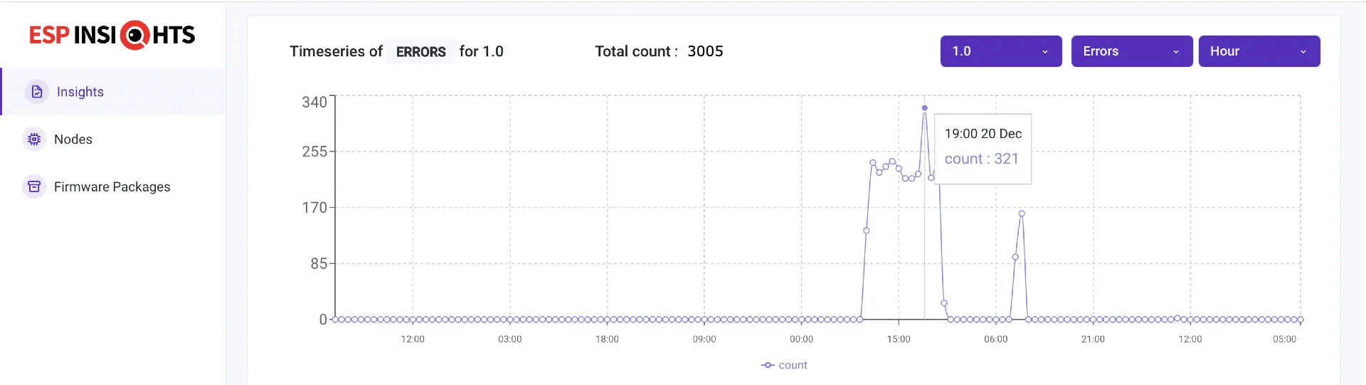 ESP Insights was released in its Beta in July 2021 and is being actively used by the ESP developer community. You can read more about it in the blog post Introducing ESP Insights. With this new version of the ESP Insights service, we introduce following new features, plus a few UI enhancements and stability fixes.