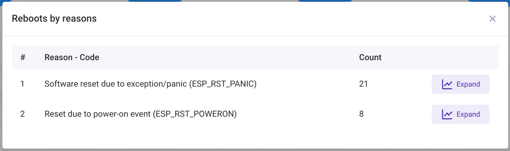 The latest version of ESP Insights introduces group analytics, that provides insights into how groups of your devices are performing. You may group devices based on the Project, Project Versions or Event categories.