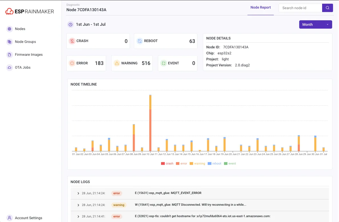 Today, the preview release for ESP Insights works with ESP RainMaker. What this implies is that we leverage the ESP RainMaker platform for device-authentication and device-cloud transport.