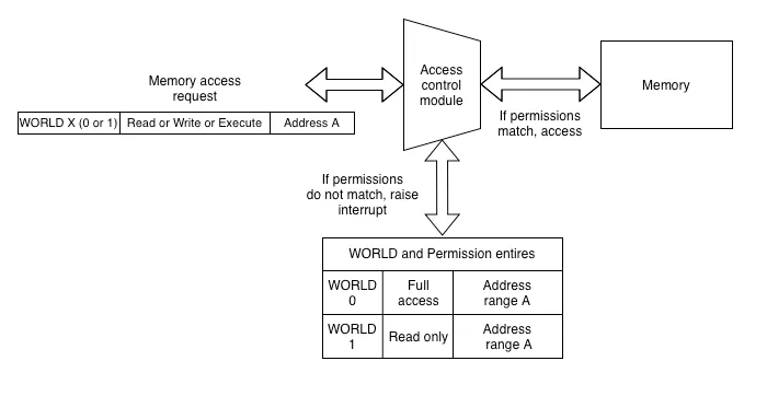 - Secure World (World0) has complete access to address range A.