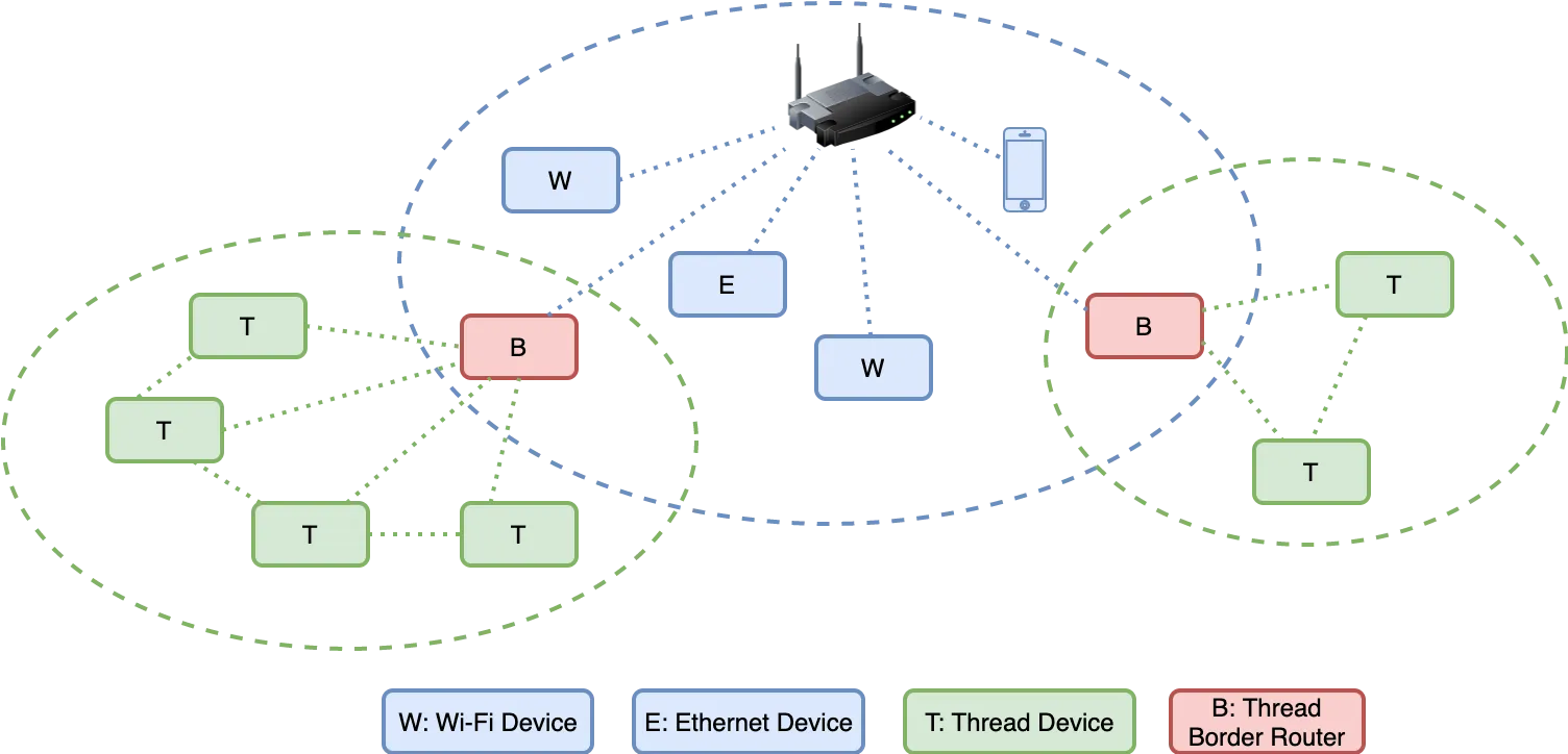 In a nutshell, Thread is an IPv6-based , low-power, mesh networking protocol for Internet of things (IoT) products. It is built on IEEE-802.15.4 technology, so the Thread devices cannot communicate with the Wi-Fi or Ethernet devices directly. In the Matter topology, a special device is required to connect the sub-networks, the device is called the Thread Border Router (Thread BR will be used for short).