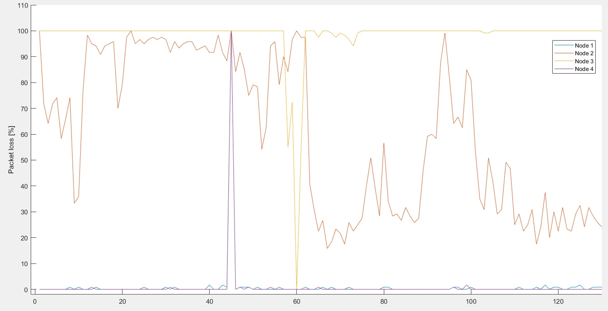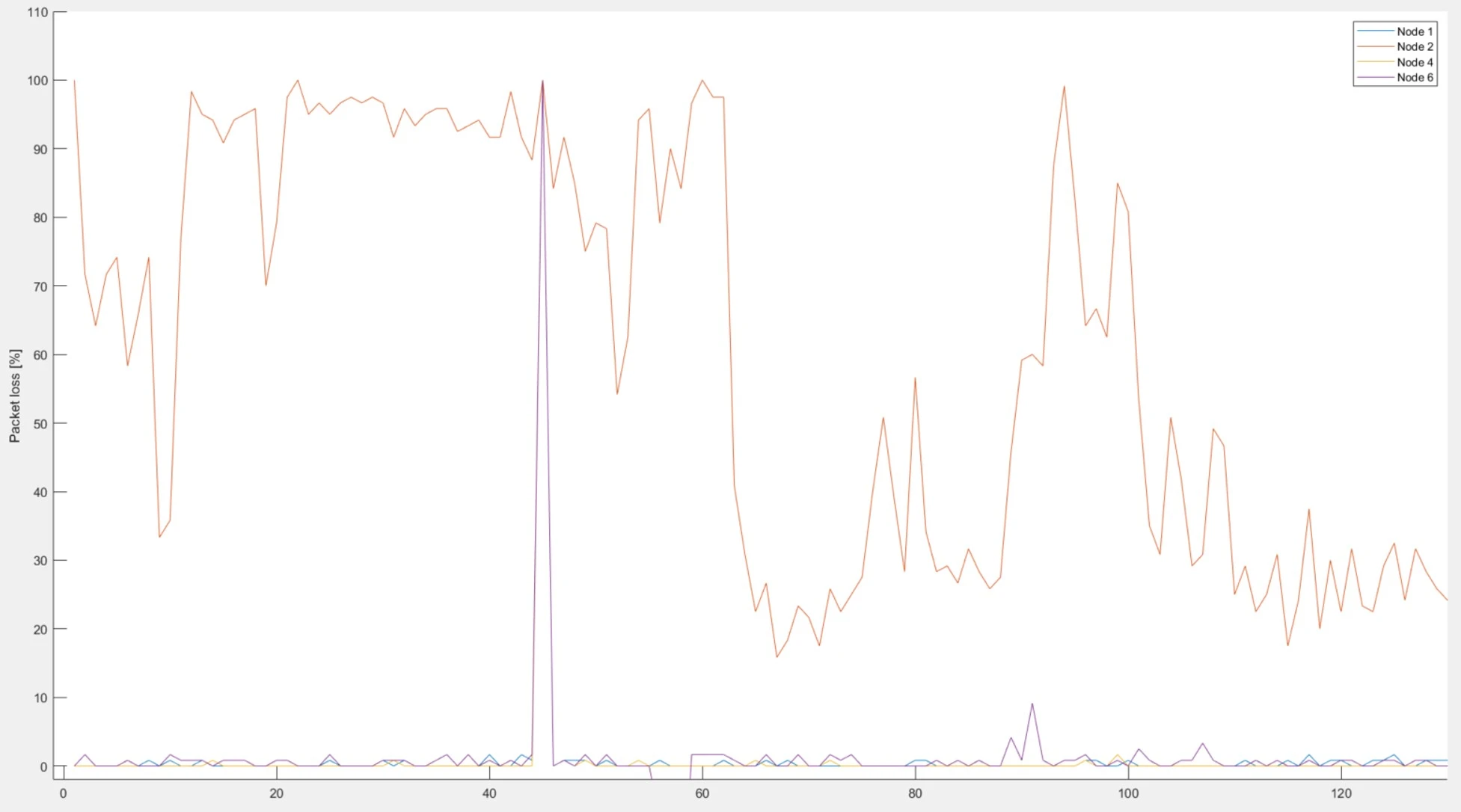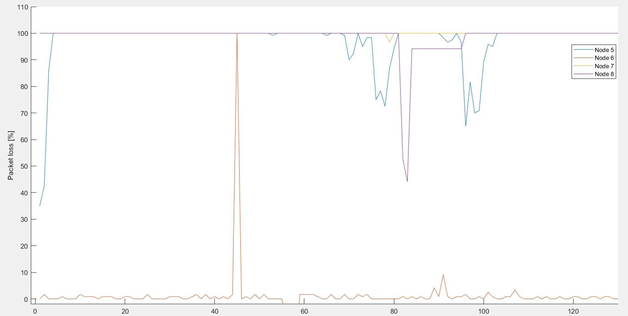 As an result, we can see following comparison of multiple nodes. On following picture is success rate shown of nodes 1-4 and 5-8.