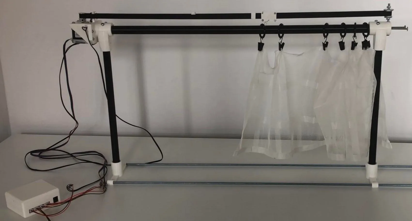 For easy adaptation to existing curtains, I designed 3D models of required holders that can be attached to the curtain rod. 3D models were made in Fusion 360 and can also be found in the repository.