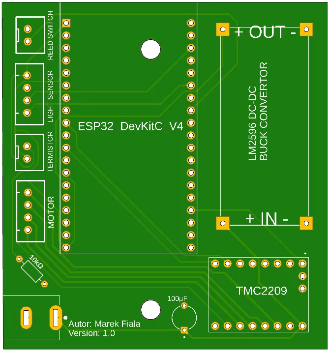 This project was created as a Bachelor’s degree project at the Faculty of Information Technology, Brno University of Technology. I decided to implement the project in Arduino IDE, because of multiple choices of existing libraries to control time, motor, or WiFi connection. This was my first project using an embedded device and all its belongings like creating PCB, 3D modeling, soldering, etc…
