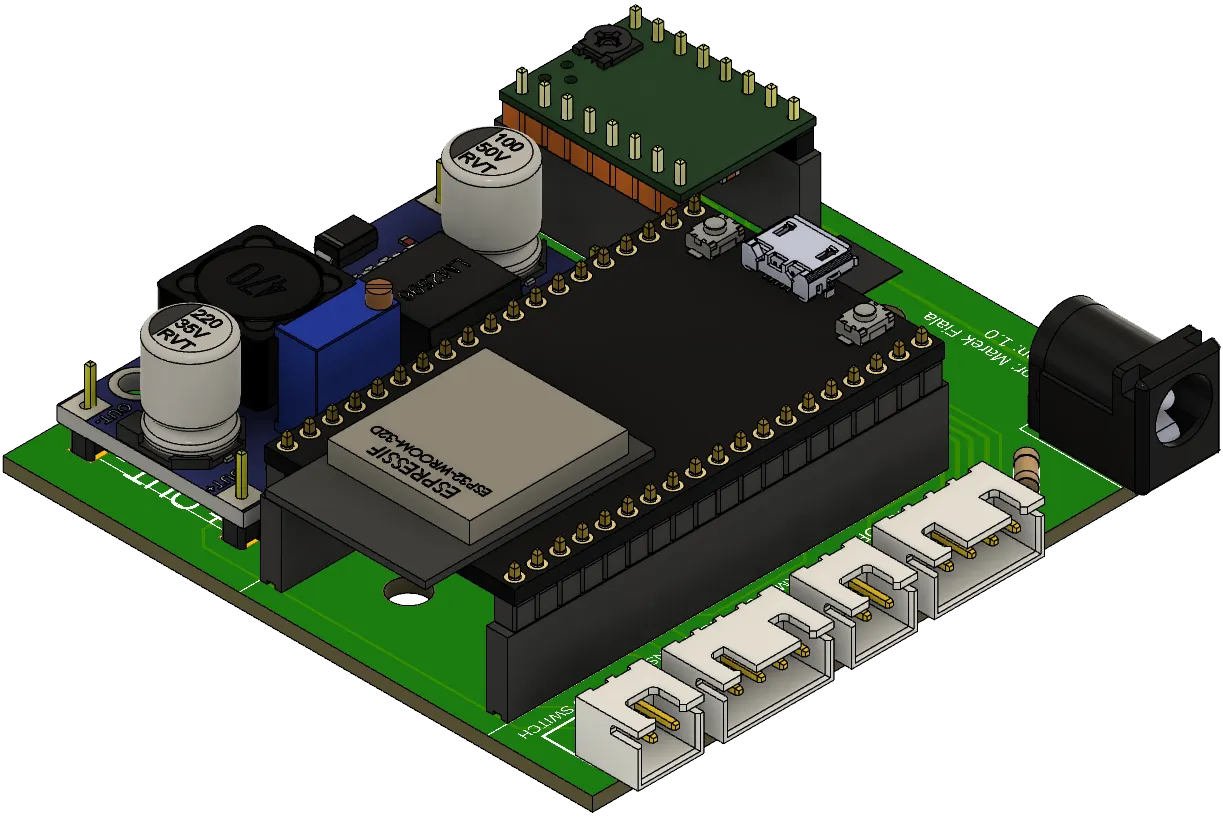 I’ve created a custom PCB board to connect all these parts. The schematics diagram can be found in the GitHub repo. For better manipulation and modularity, all the peripherals are connected with JST XH connectors and pin sockets soldered to PCB.