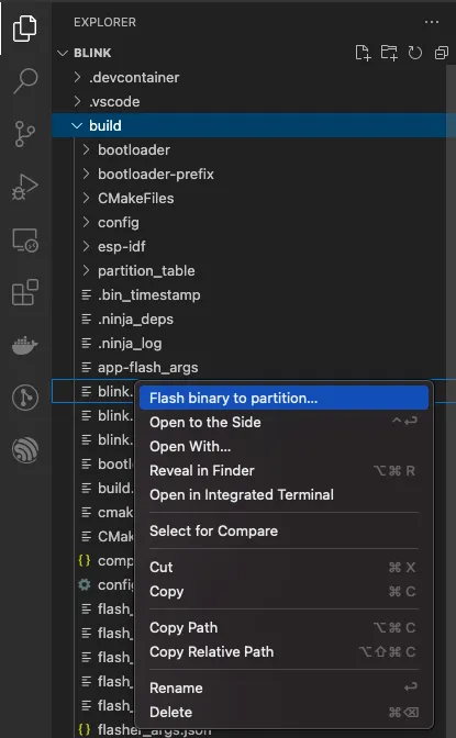 When you can click on any partition, either you can flash a .bin file to this partition or launch the ESP-IDF: Partition Table Editor UI to edit the partition table. You could also right-click on the .bin file to flash it to one of the partitions in the Device partition explorer.