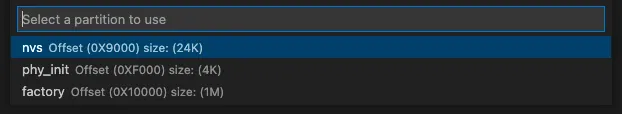 To see the partitions of the current serial port, execute the ESP-IDF: Refresh partition table and use the sdkconfig partition offset or a custom partition offset to see the current partitions of your device in the ESP-IDF Explorer tab.