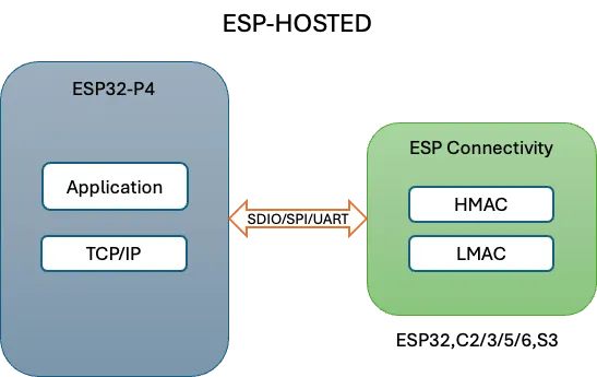 ESP-Hosted-FG provides a standard 802.3 (Ethernet) network interface to the host. This setup ensures the microcontroller can handle more complex or demanding processes without compromising wireless performance.
