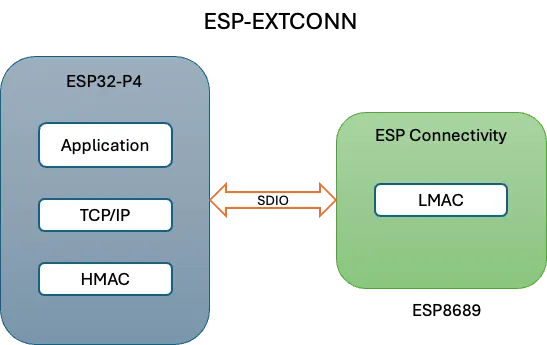 ESP-Extconn provides external wireless connectivity(Wi-Fi & Bluetooth) for ESP chips that do not have built-in wireless capabilities. This component’s APIs are compatible with the Wi-Fi and Bluetooth component APIs in the ESP-IDF.