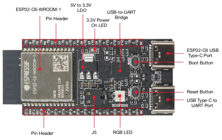 - ESP32-C6 USB Type-C Port pro flashování a debug