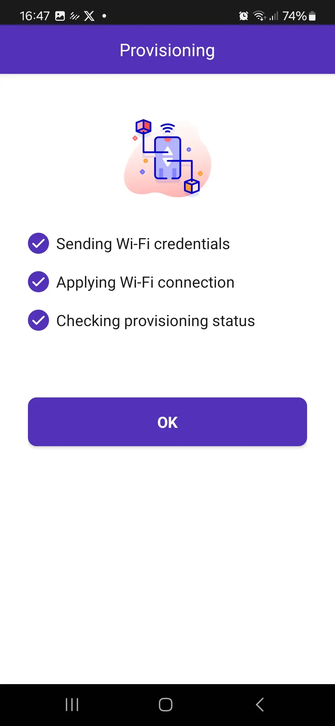 After the provisioning process is completed, the device will connect to the selected Wi-Fi network.