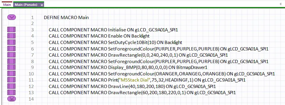 Download the program to the M5 stack dial and check is all works ok! Note that if you want to you can also create your program in C code or in Pseudocode: