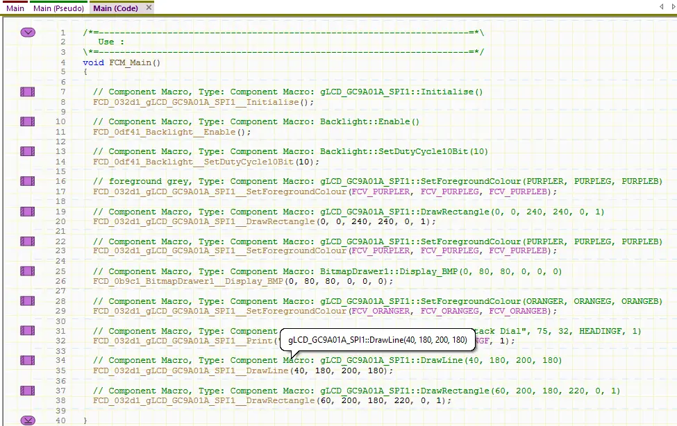 In this section we show you how to use the Display component in Flowcode. Once you know the colours, fonts and other parameters of your design, display graphics are just a series of commands to draw the lines, graphics and text in the right places.