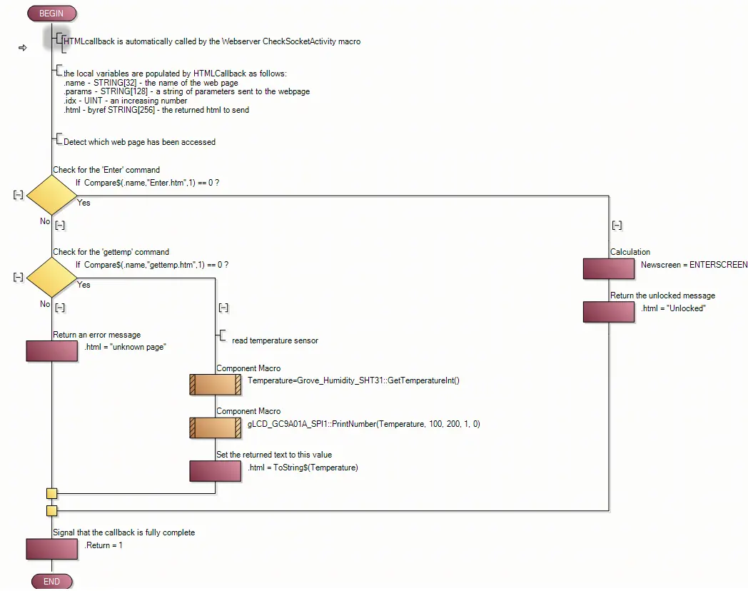 - Embedded system detects “192.168.1.141/gettemp.html” request in the HTML Callback macro