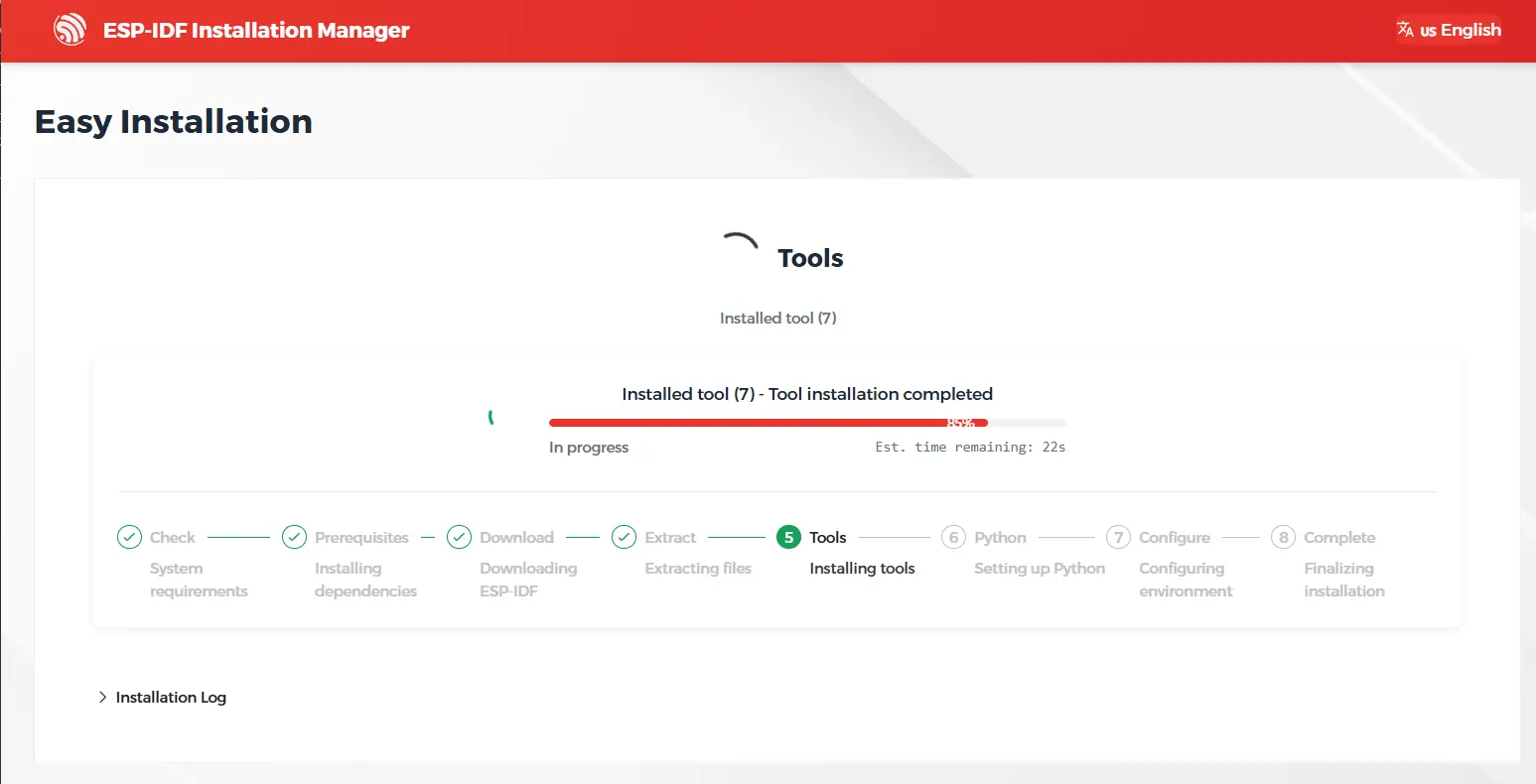 Once the ESP-IDF extension is installed, we need to install the toolchain. This is done through the Installation Manager.