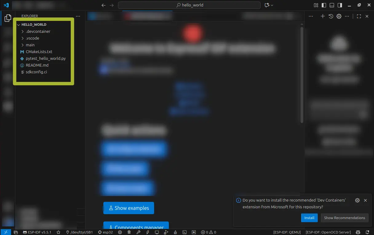Once all prerequisites are installed, we can add the ESP-IDF extension to VS Code. Using the ESP-IDF extension, we’ll then install and configure the ESP-IDF toolchain.