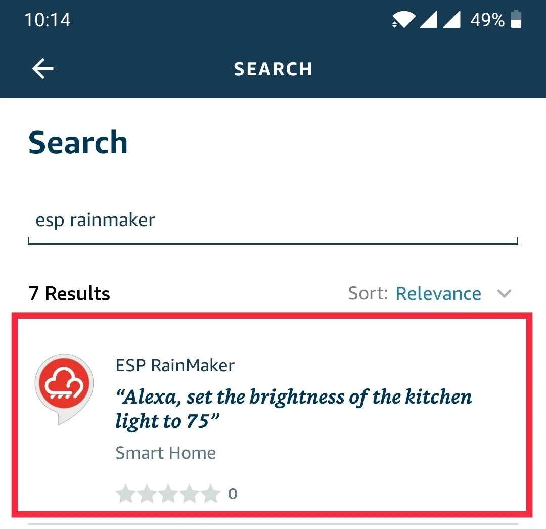- Open the Alexa app on your phone, go to Skills and Games in the menu and search for ESP RainMaker.