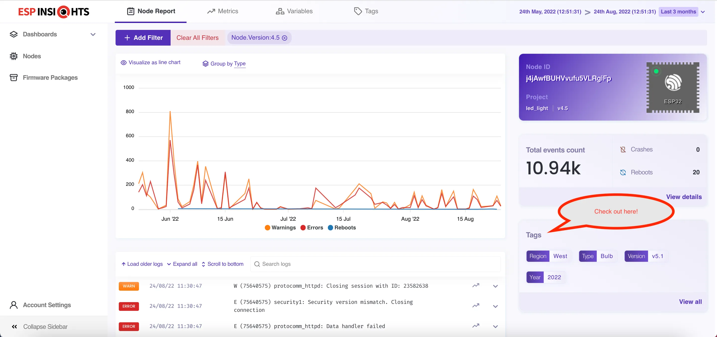 Visit https://dashboard.insights.espressif.com to play around with tags on your devices.