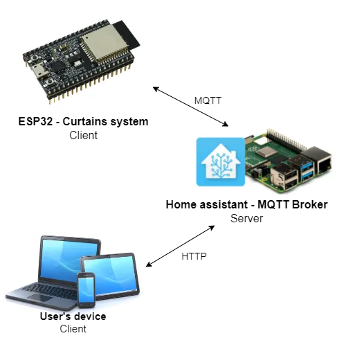 Communication between the user and the system is ensured by Home Assistant. Home Assistant runs as a server on a local network to which the ESP32 connects and communicates using the MQTT protocol (MQTT Broker extension in Home Assistant).