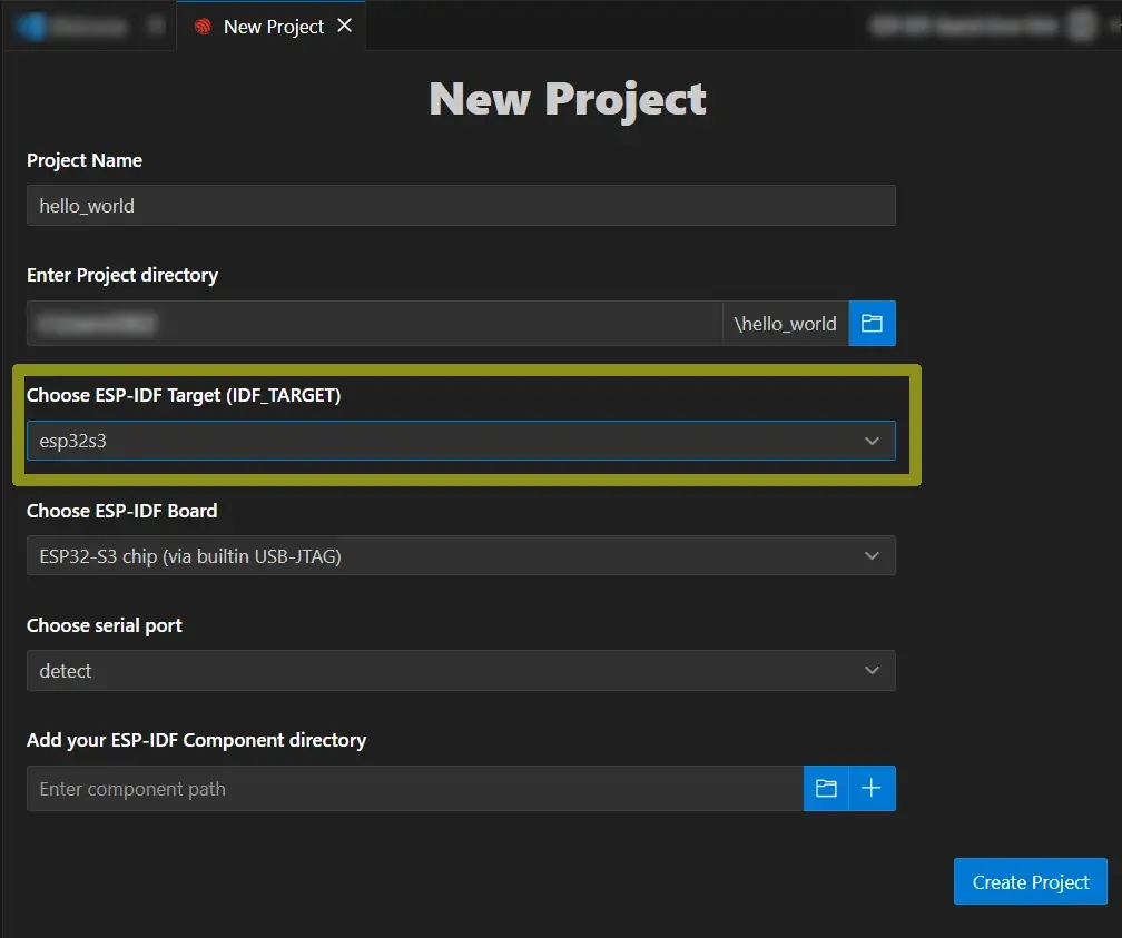 ESP-IDF: New Projectand select itIn the dropdown menu, select