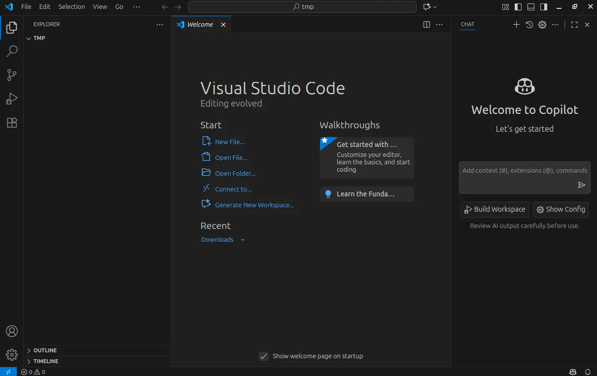 CTRL+SPACEand search forCode. Click on the VS Code icon - You should now see the VS Code interface